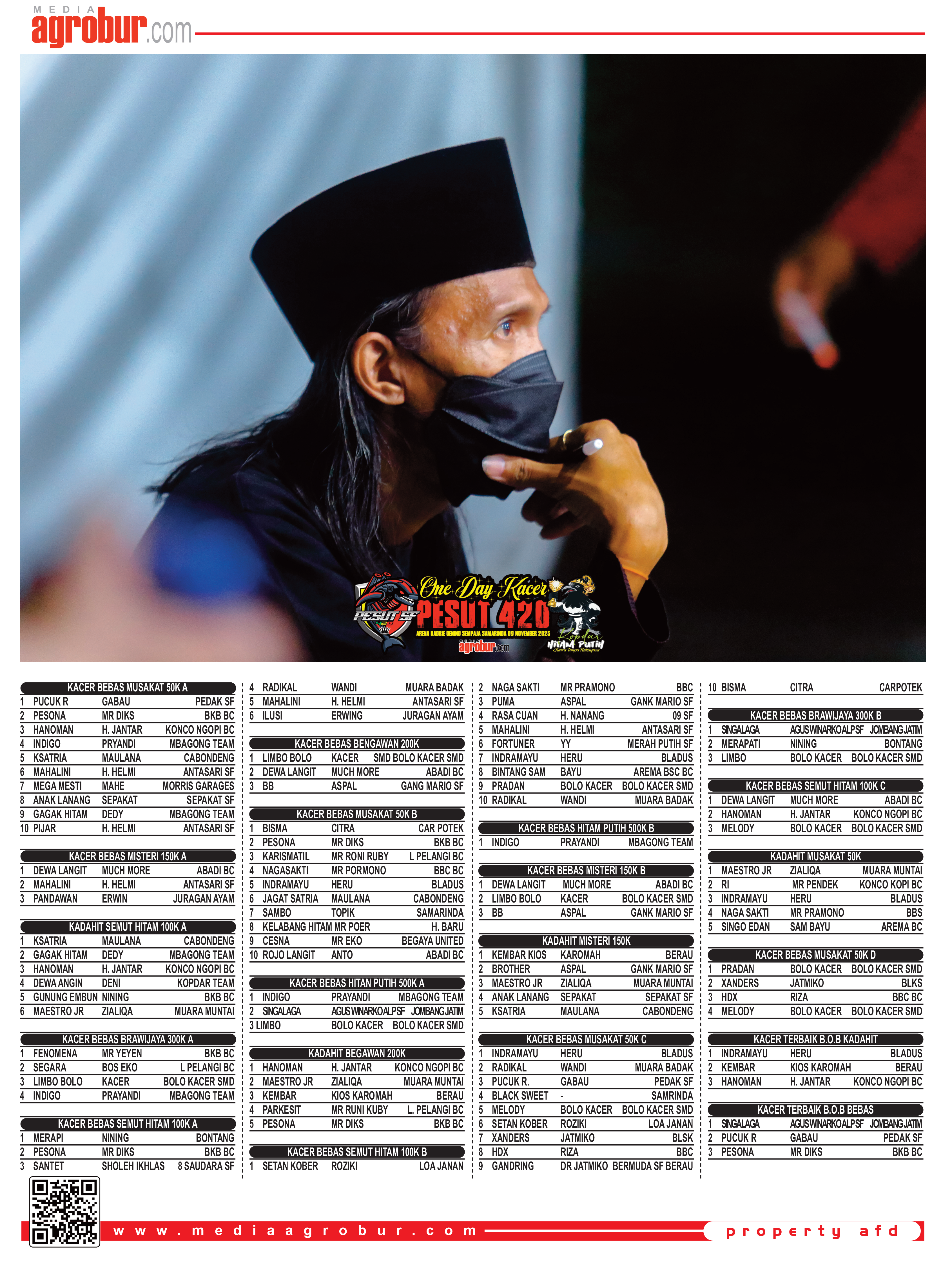 Sejarah kembali terukir dalam peta Kicau Mania Kalimantan Timur (Kaltim) khususnya di Samarinda yang baru saja sukses menggelar Kopdar One Day Kacer garapan Pesut 420, Minggu 09 November 2025 di Arena Kadrie Oening Sempaja Samarinda. Panitia menggeber 20 kelas kacer yang terbagi dari bebas, khusus dada hitam dan BOB dengan system G-24 dan G-36.