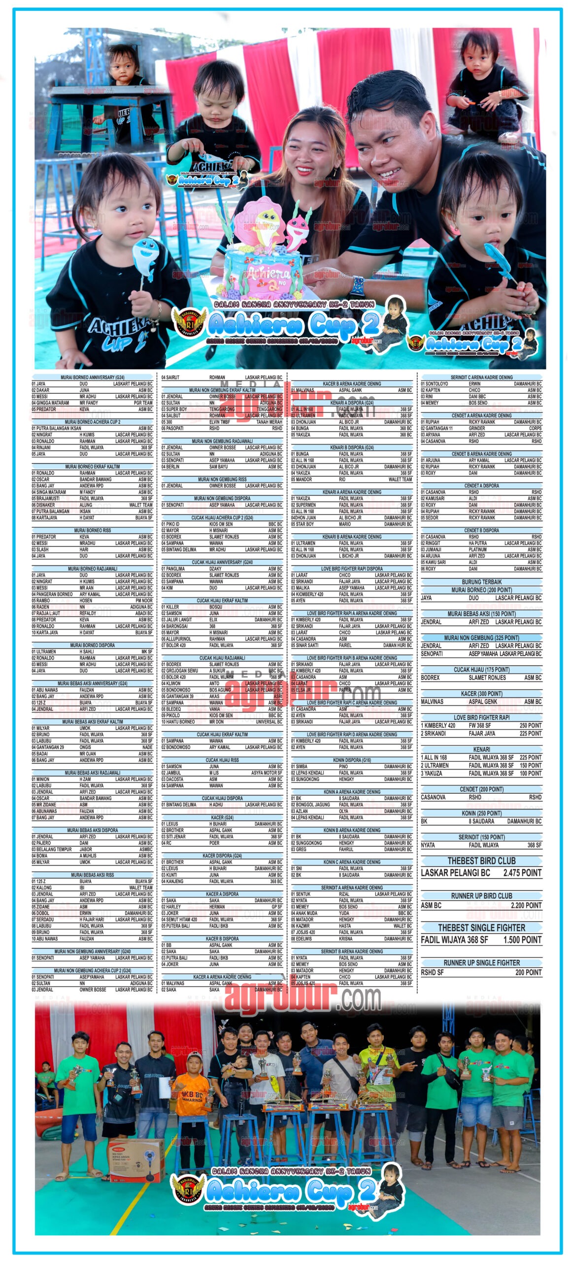 “Benar mas kalau Achiera Cup 2 ini adalah Anniversary ke-2  putri tercinta kami dan sekaligus sebagai salah satu Event tahunannya Radjawali Indonesia di Samarinda. Jadi tidak mungkin kalau harus diundur sehabis Lebaran sangat jauh mundurnya, kasihan anaknya sudah ingin meniup lilin juga memotong serta  memakan Kue Ulang Tahunnya,” seloroh Afandhy diamini Cici sang istri tercinta.